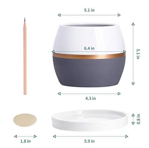 Planter Pots Indoor - 7.4 Inch Cylinder Ceramic Flowerpot with Drainage Hole & Saucer for Indoor Plants Flower Succulent Modern Home Decor(Plant NOT Included)